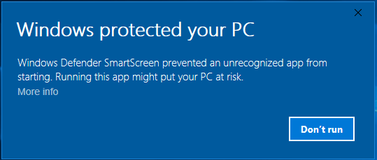 Note: Windows might ask for permission to run the installer, so click on "More info" and click on "Run anyway"